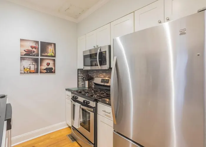 Die Villa liegt im Stadtviertel South Philadelphia und verfügt über 2 Schlafzimmer sowie eine Küche mit einer Mikrowelle, einer Kaffee-/Teemaschine und einem Kühlschrank.